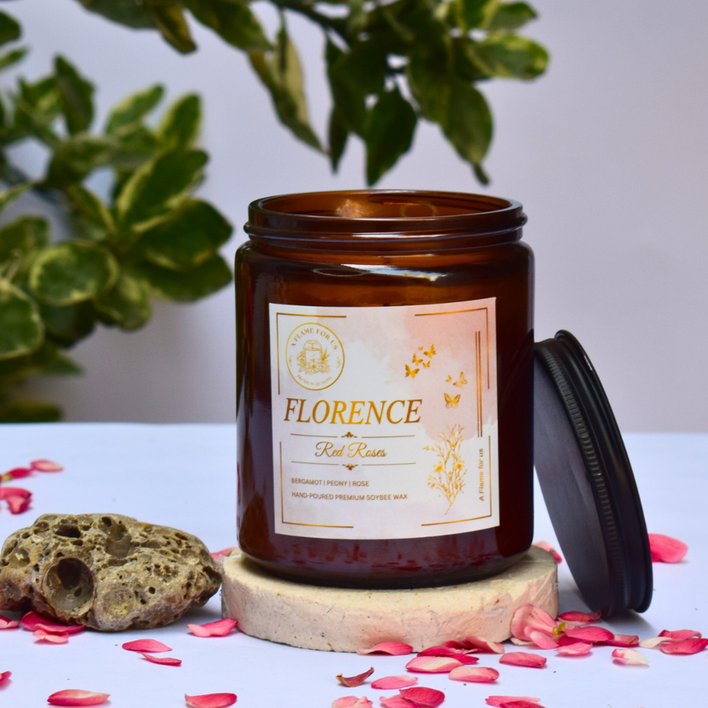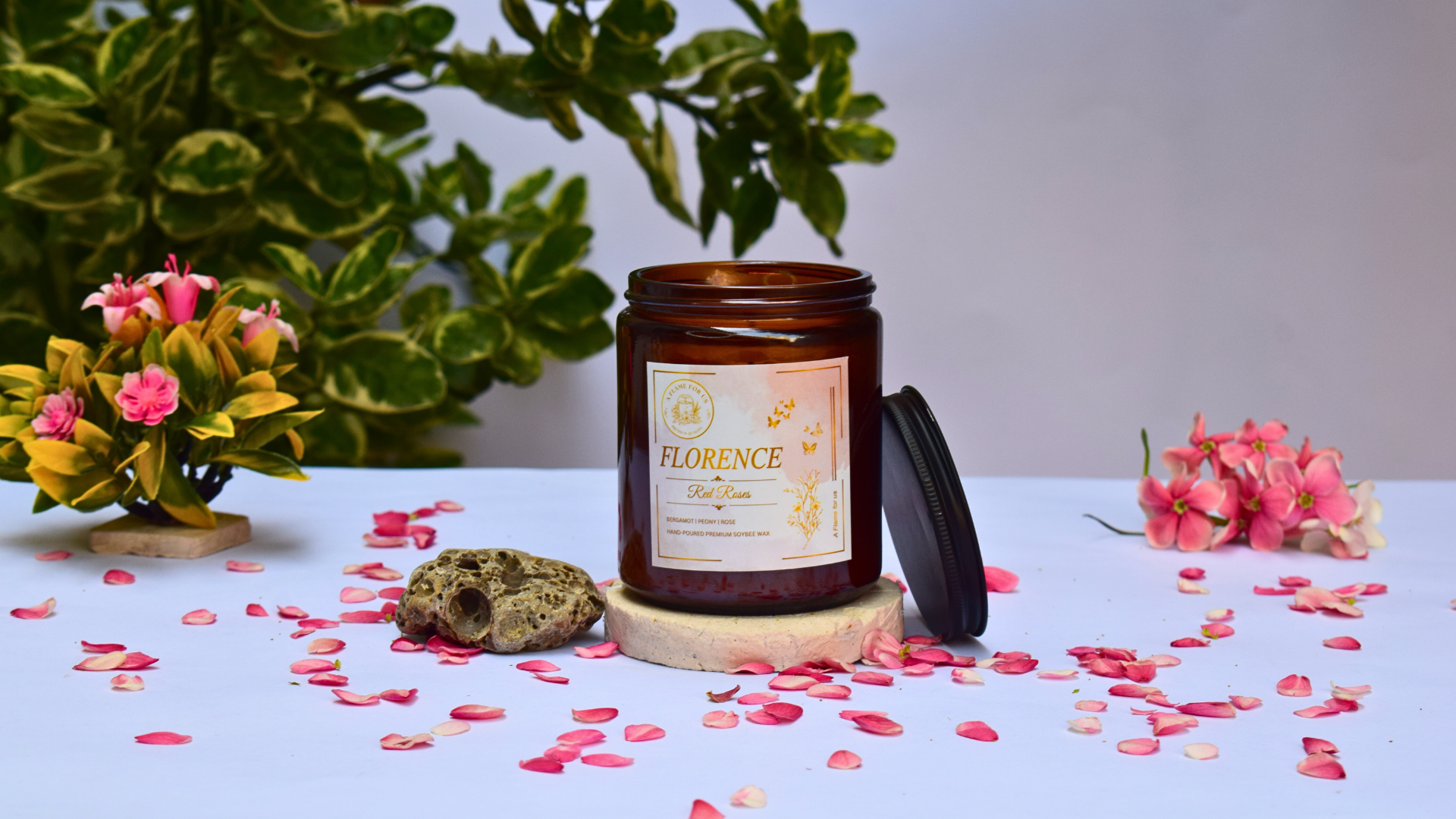 A timeless blend of fresh red roses, soft peony, and a hint of bergamot, this candle fills your space with romance and serenity. Hand-poured with premium soy wax, it delivers a clean, long-lasting burn — perfect for setting a warm, elegant ambiance.